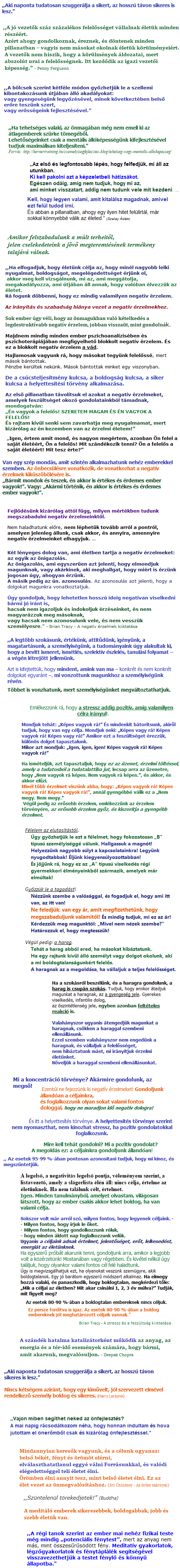 ,,Ha magunkhoz beszélünk, mindig hangsúlyozzuk ki az ,,én” fogalmát! Az ,,én” varázsigeként nyit utat a tudatalattiban az őt követő minden szó és gondolat számára.” + vagyok.