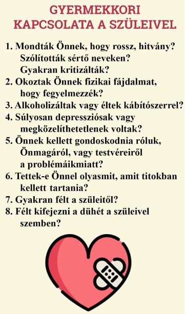 Az alábbi kérdőívvel segítünk megvizsgálni szüleiddel való kapcsolatod, valamint annak hatásait: